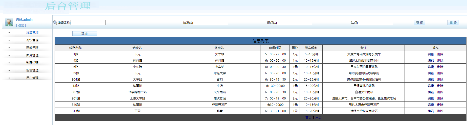本系统为基于jsp+mysql的网上公交管理系统,包含用户和管理员登录权限,功能如下: