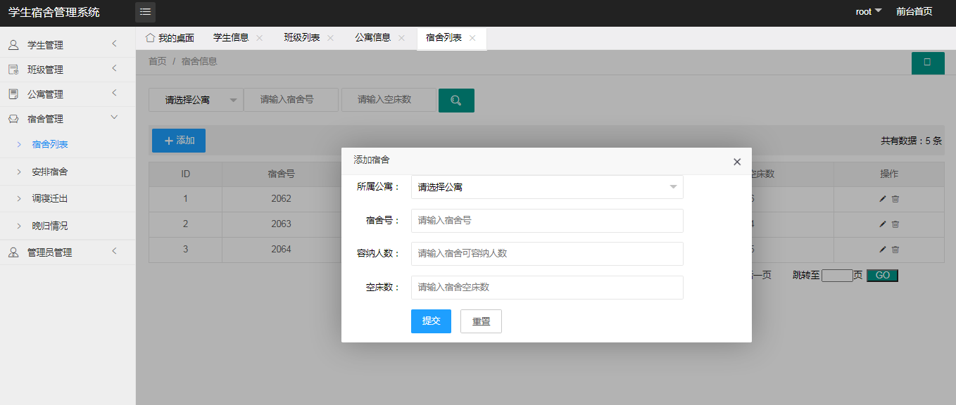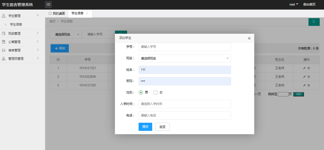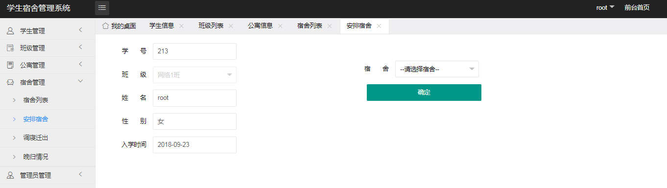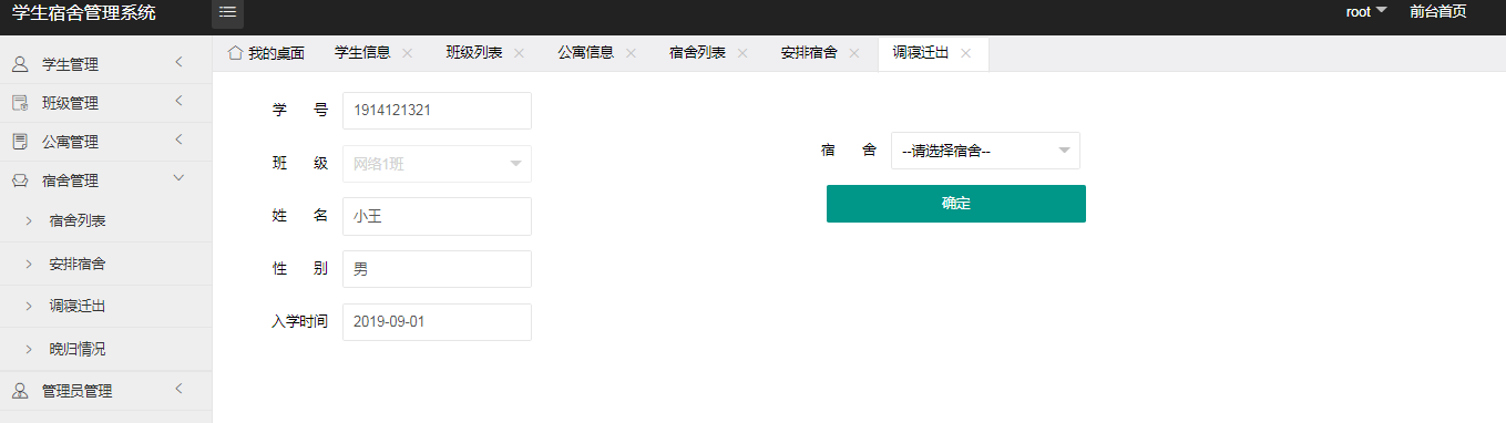 学生宿舍管理系统的实现是由不同的功能模块搭建组合而来,根据功能模块进行划分不同用户角色所操作信息及获取到的数据信息根据权限不同,需要根据用户需求对功能模块的内容进行设计开发。