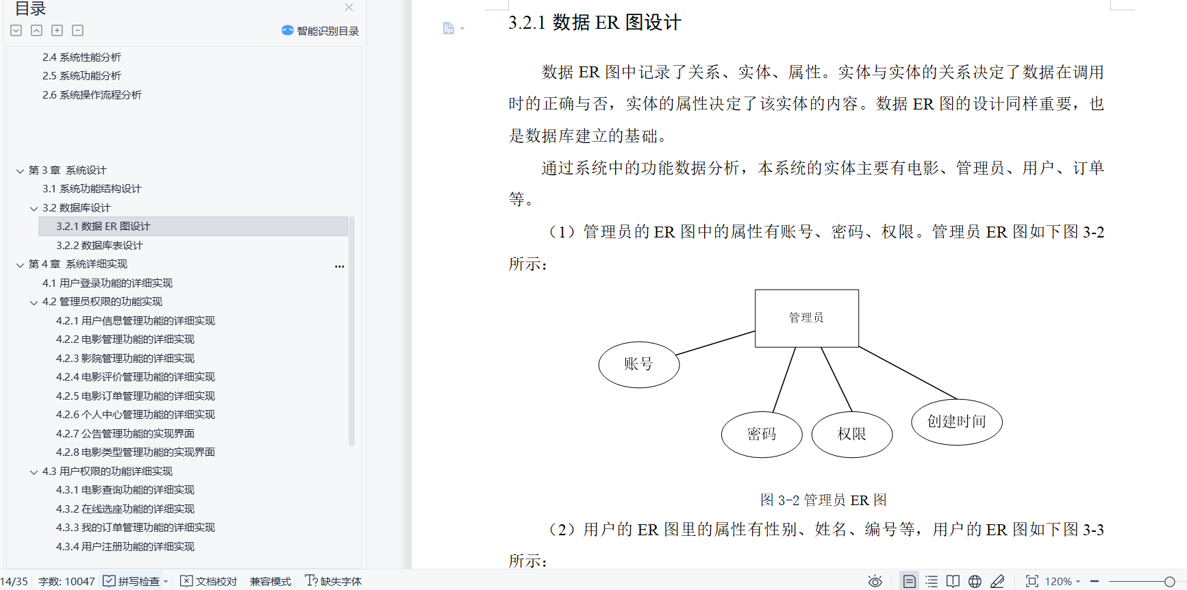 本系统的功能围绕用户、管理员两种权限设计。根据不同权限的不同需求设计出更符合用户要求的功能。 本系统中管理员主要负责审核管理注册用户,发布分享新的电影,审核用户的购票信息和进行影院、电影类型管理,用户可以对需要的电影进行选座、购票等。 管理个人资料、查询电影、在线购票、管理订单等,用户的个人资料是由用户注册时产生,用户的订单内容由用户在购买电影票时产生,用户评价内容由用户在评价电影操作时产生。