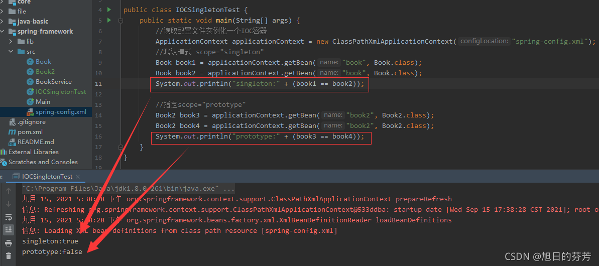 相当于指定了Book2的作用域为每次获取都创建新的Bean对象,测试代码如下: