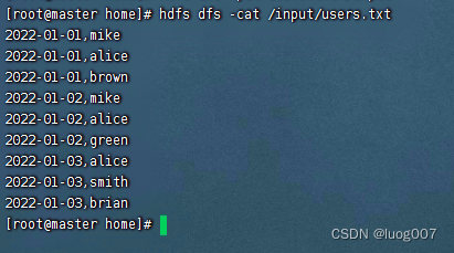 2022-01-01新增了3个用户(分别为mike、alice、brown),2022-01-02新增了1个用户(green),2022-01-03新增了两个用户(分别为smith、brian)。