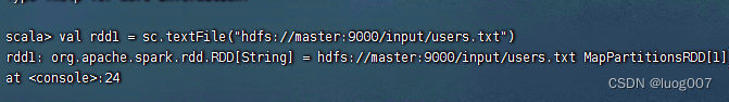 val rdd1 = sc.textFile("hdfs://master:9000/input/users.txt")