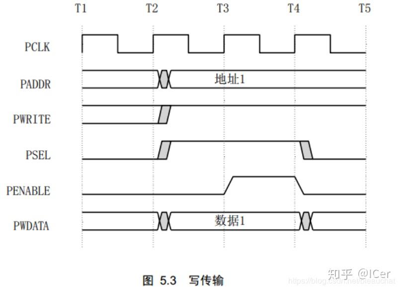 2、当有传输要进行时,PSELx=1,,PENABLE=0,系统进入SETUP状态,并只会在SETUP状态停留一个周期。当PCLK的下一个上升沿到来时,系统进入ENABLE状态;