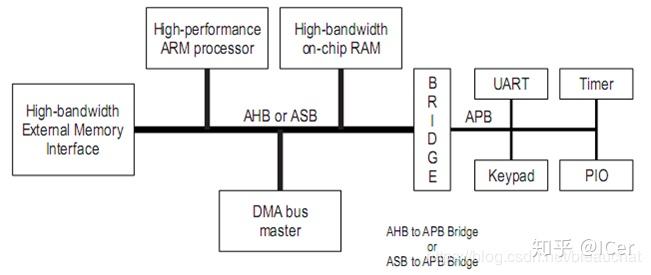 AHB是先进的高性能总线,AXI是先进的可扩展接口,APB是高级外围总线;