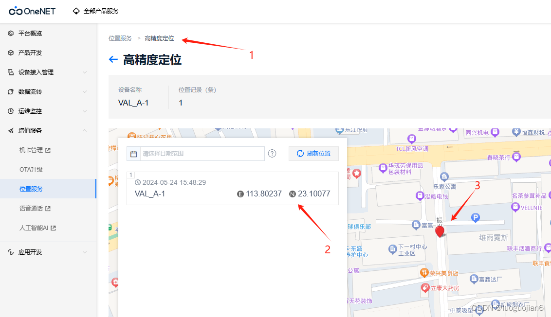 先在这个平台,建一个设备,添加系统功能的,高精度定位。