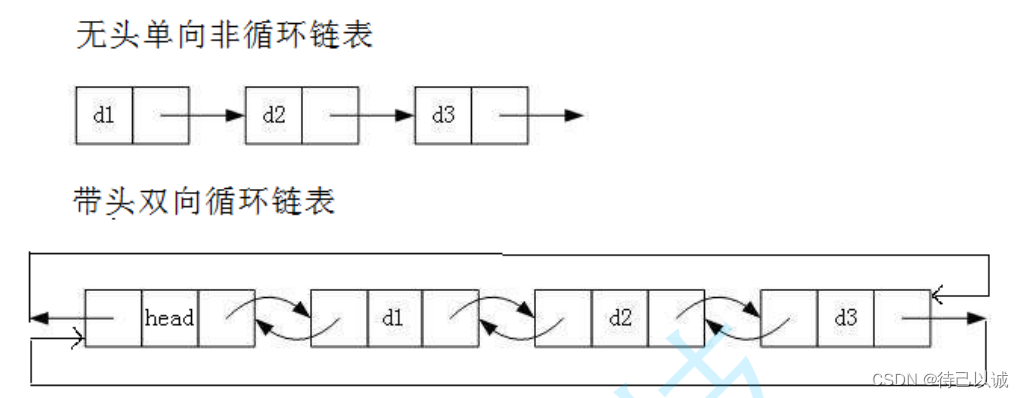 实际中链表的结构非常多样,只要具有链式逻辑的结构都可以纳入链表范畴