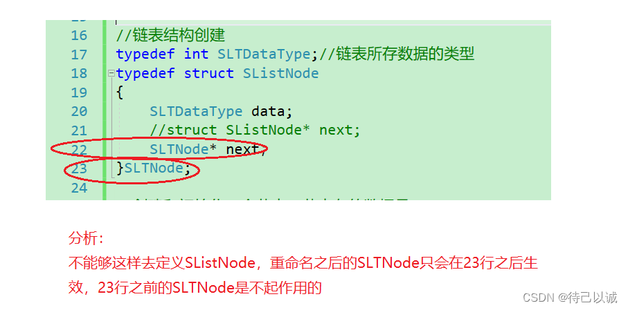 struct SListNode* next;//下个同类型结构体的地址,以便于找到下一个节点
