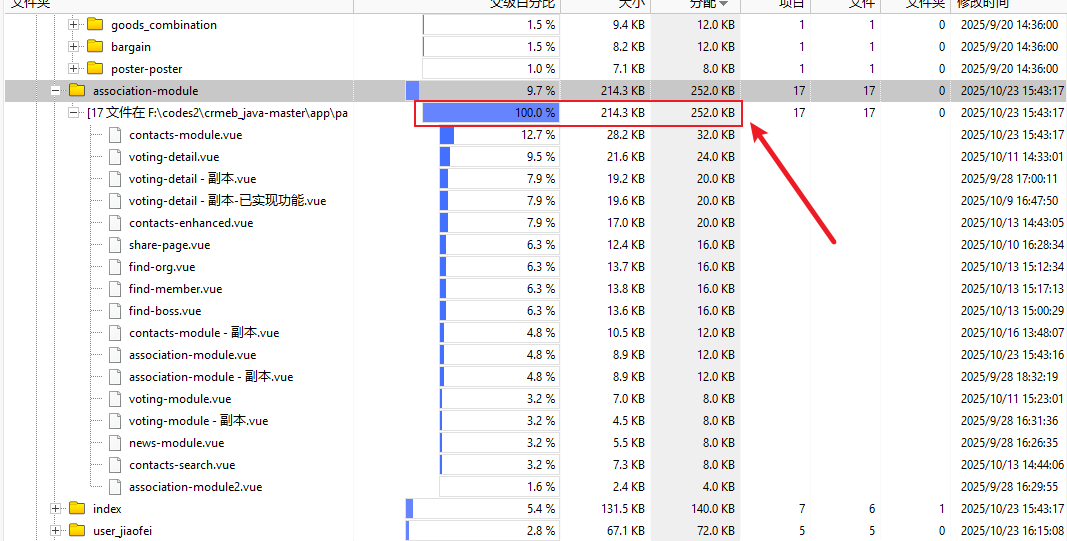 3 对 源码包的分包处理: 比如,通过WizTree 工具 发现该文件夹代码较大,同时又没有做分包处理。问题优化所在,可以对该目录下文件进行分包处理和删除冗余的备份文件。 (注意:其他地方备份相关文件)