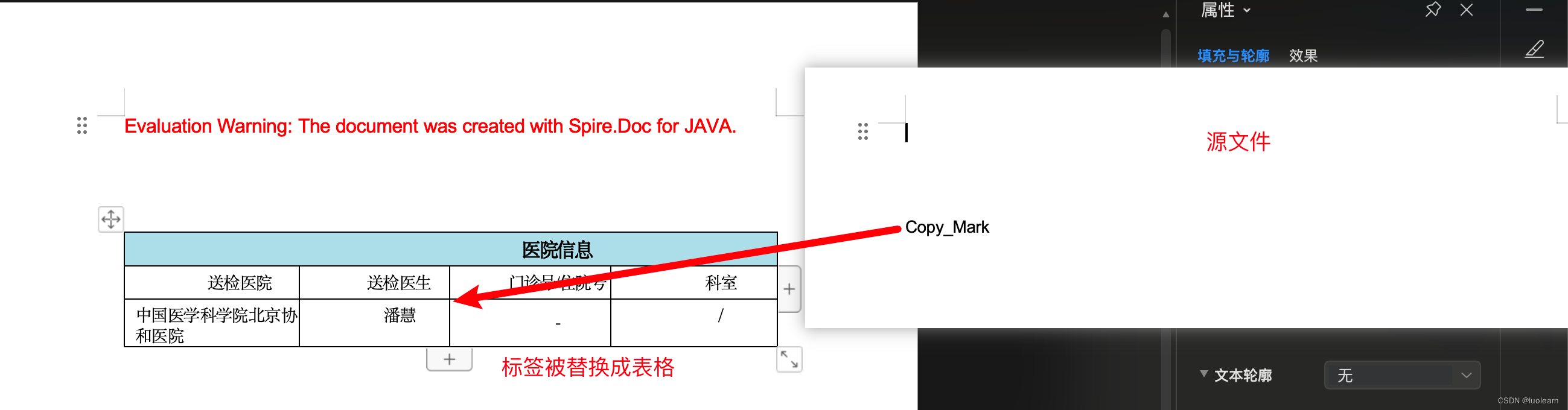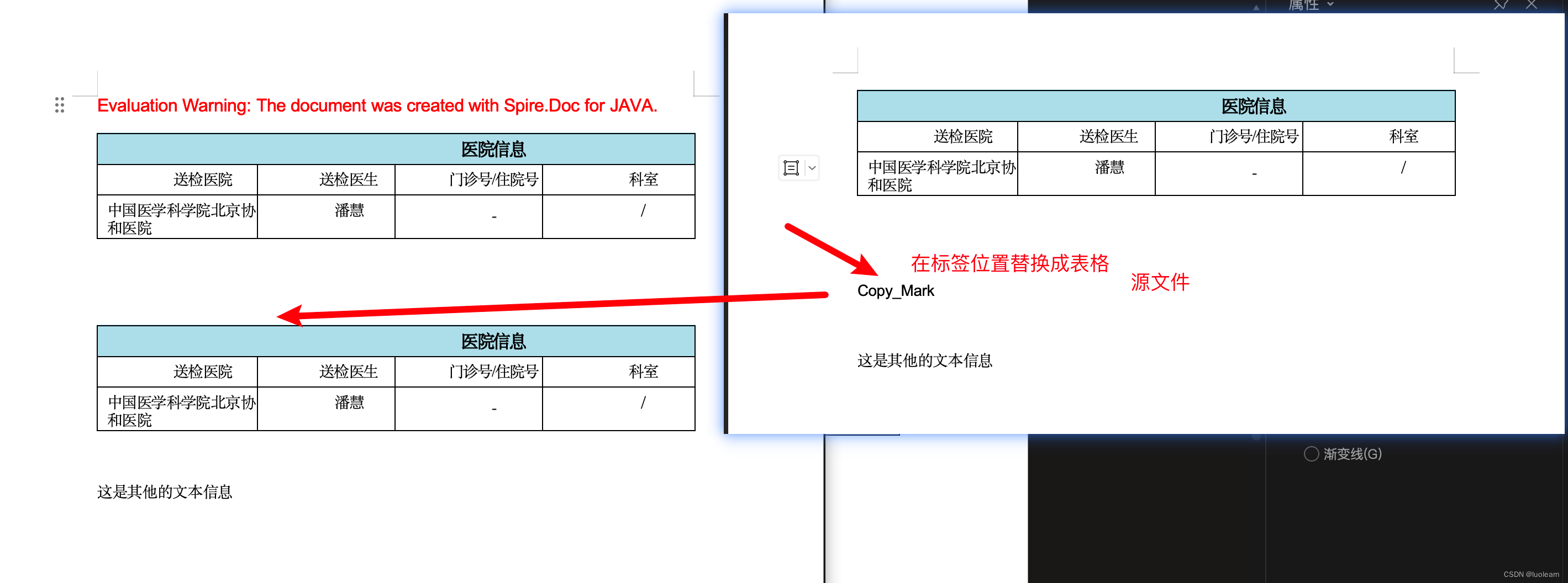 * 复制A word模版下表格到文本标签处并且生成一个替换好的新的B word模版(A存在,B新生成)