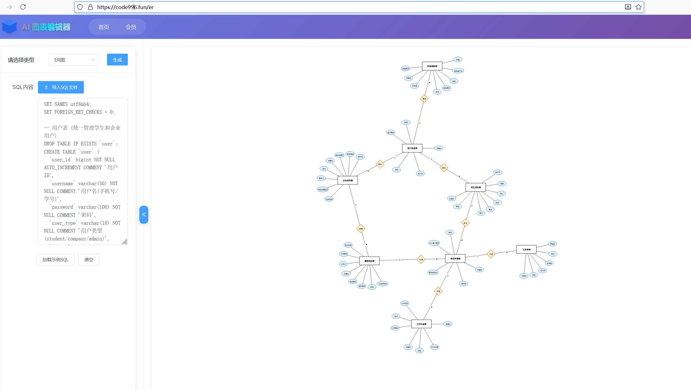 🌟 核心亮点:轻松处理多表关联和复杂外键,自动生成的ER图不仅规范又美观,还支持后续编辑,随时调整细节。