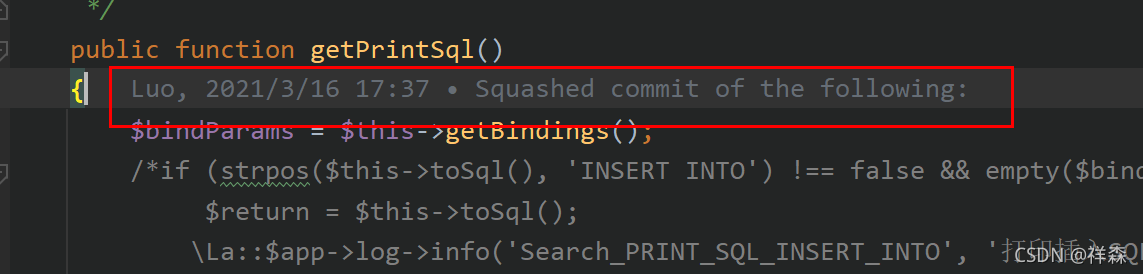 2,作用:显示当前代码提交的用户名、时间、以及备注信息