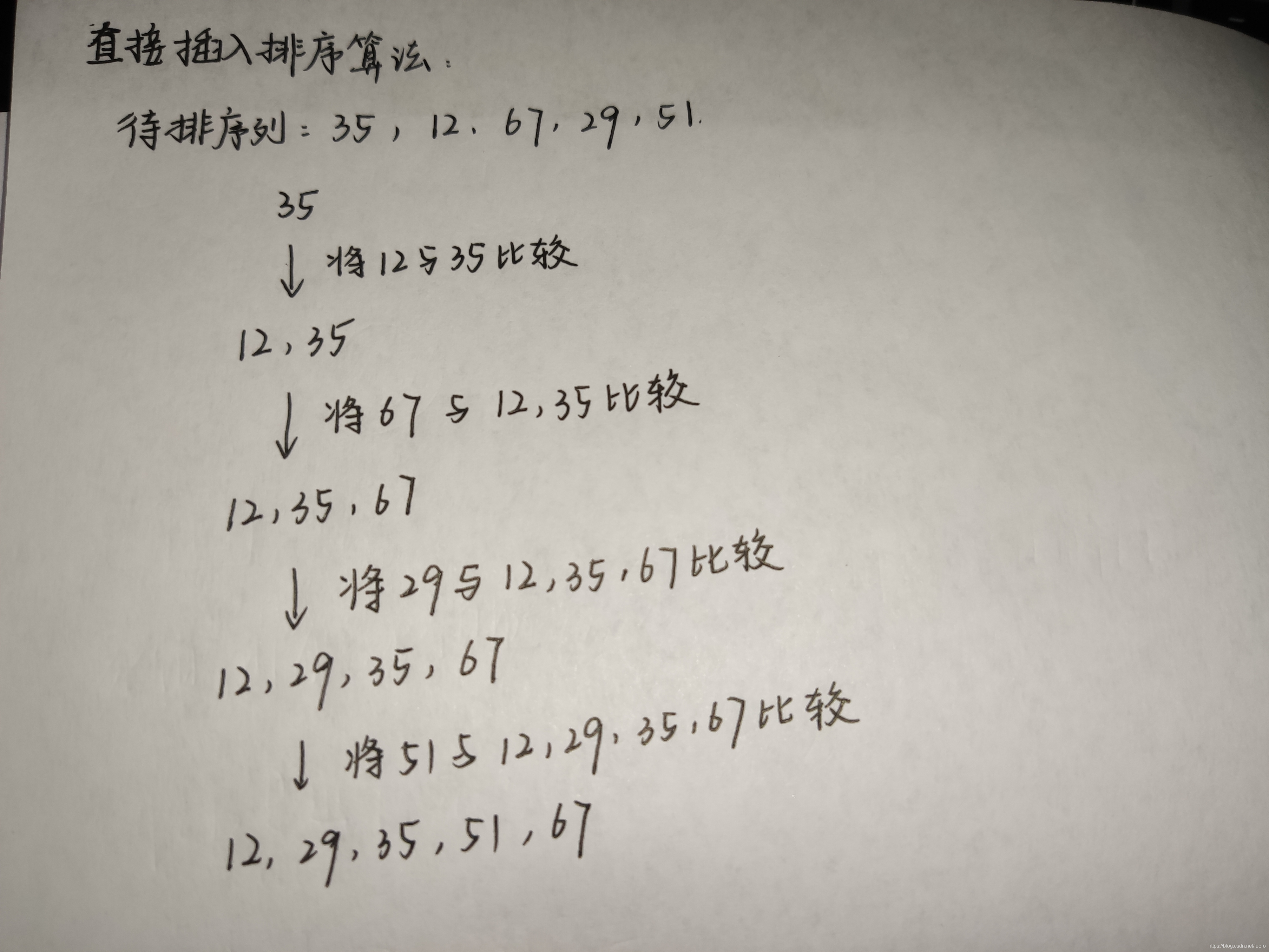 由此,直接插入排序是一种稳定的排序算法,其时间复杂度为.排序的过程中仅需要一个元素的辅助空间,空间的复杂度为