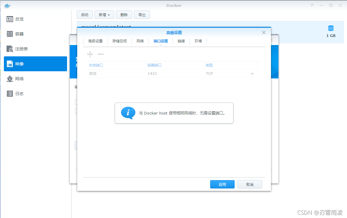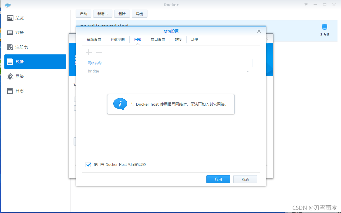在网络配置页面勾选“使用与Docker Host相同的网络”,这样就可使用NAS的IP访问