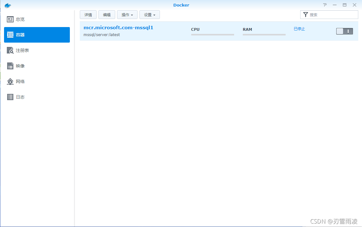 安装成功后,我们可以在WEB界面的主菜单中打开docker,切换到映像选项卡,我们可以看到刚才安装好的mssql映像