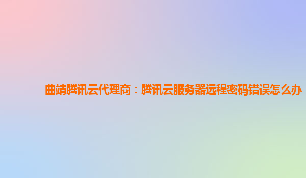 曲靖腾讯云代理商:腾讯云服务器远程密码错误怎么办