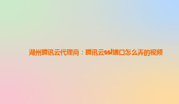 湖州腾讯云代理商:腾讯云ssl端口怎么弄的视频