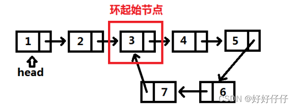有环的判断条件是链表中有两个节点指向了同一个节点