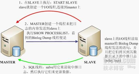 每个master/slave上都有三个进程,master有多个线程,他为每个slave连接都创建一个线程,而每个slave只有I/O和SQL线程。