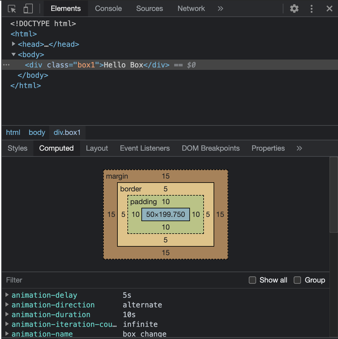 然后我们在一个css选择器里面去引用定义好的keyframes动画,同时指定动画时长、变化曲线和延时: