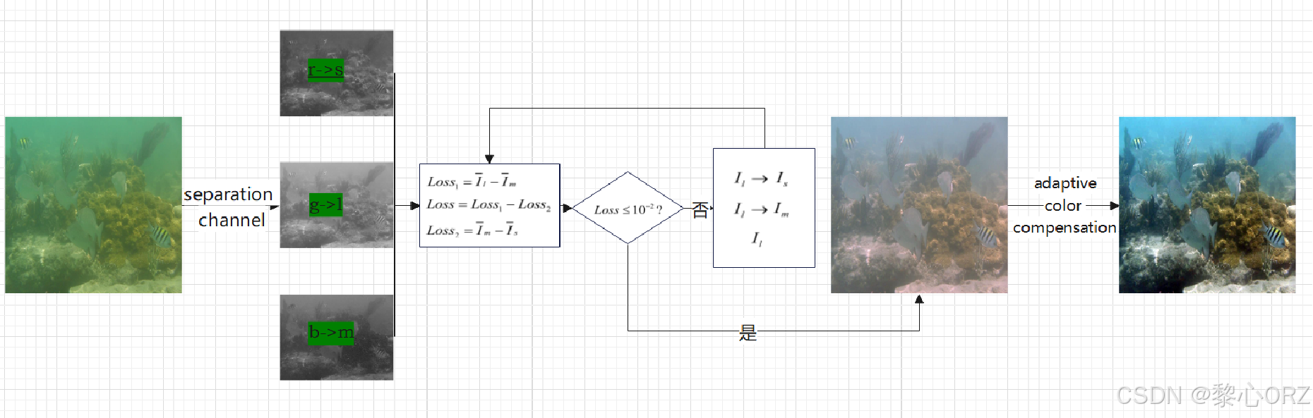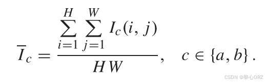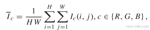 在灰色世界中,具有自然颜色的图像的所有颜色通道具有相似的平均值和直方图分布。因此,最小颜色损失原则受到灰色世界假设的启发。基于最小颜色损失原则,大颜色通道与中等和小颜色通道之间的总颜色损失Lcolor被定义为: