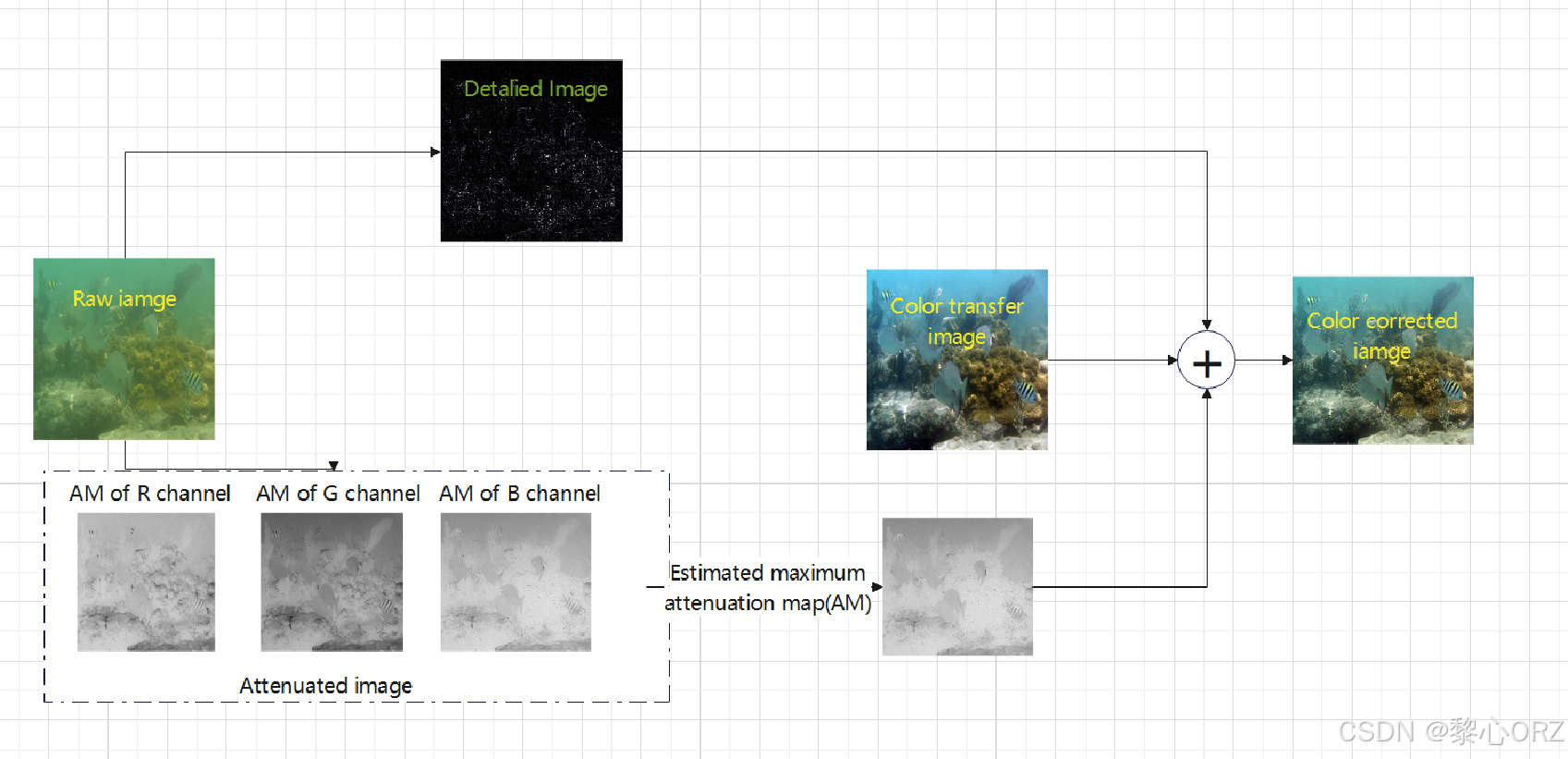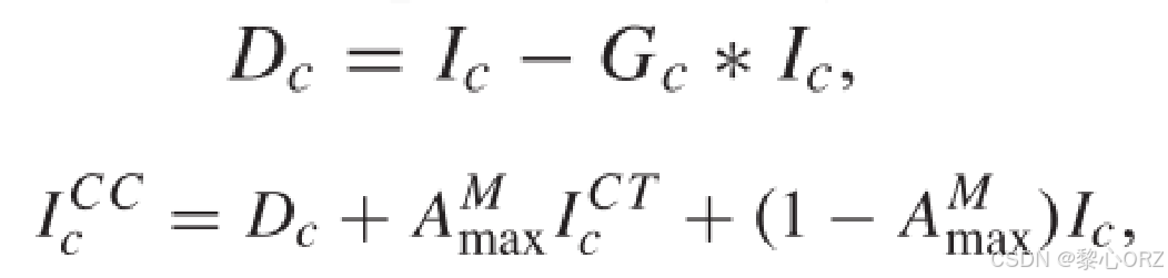 ICC表示最终颜色校正图像,AM_max表示获得的最大衰减图,详细图像为Dc ,其通过高斯核从输入图像中减去模糊版本。