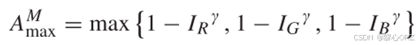 由于灰色世界假设忽略了波长相关的光吸收,它可能会引入一些不必要的颜色失真,因此,水下图像颜色校正还需要充分考虑波长相关性。为了准确估计波长相关衰减水平,考虑了不同的光衰减,并选择最大衰减图作为颜色转移的引导图像。最大衰减图可以表示为:其中γ是控制接收光强度的参数,γ的默认值设置为1.2