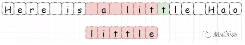 先来假设目标串为:Here is a little Hao,模式串为:little。