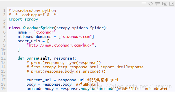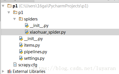 在spiders目录中新建 xiaohuar_spider.py 文件