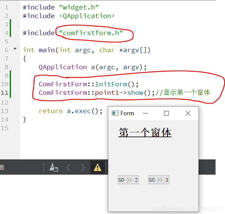 (5)main.cpp中,第一个窗体的显示