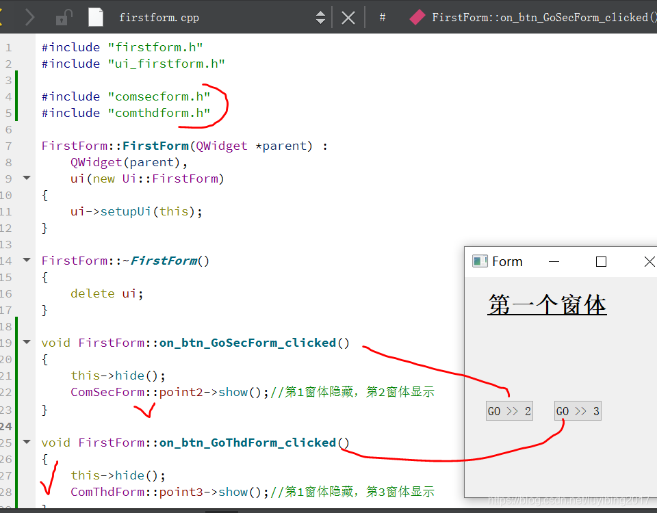 | 头文件 | #include "firstform.h" | #include "secform.h" | #include "thdform.h" |