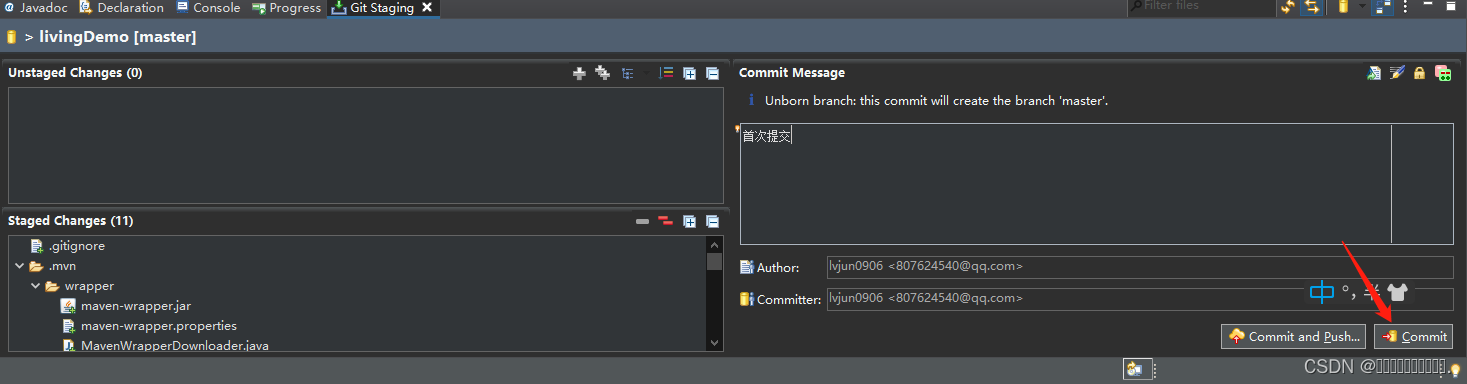 接下来我们需要将代码提交到本地仓库,右键项目目录-->Team-->Commit...