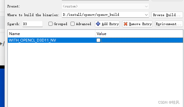 4.取消[WITH_OPENCL_D3D11_NV]选项,再次【configure】【generate】