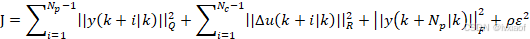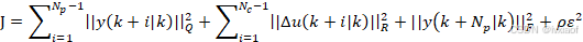 处系统输出与参考值之间的误差的加权平方。第二项是控制增量代价项,目的是改善控制的平滑性,最后一项是引入的松弛因子,其中ρ