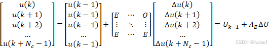 ,在MPC中加入控制增量约束,构建新的状态量: