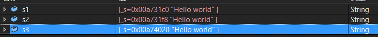 以上代码,就是典型的浅拷贝,我们可以看到s1,s2和s3的指针实际指向的都是同一块地址
