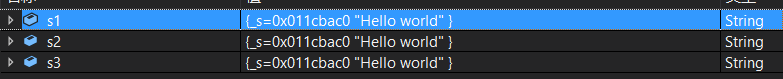 s3[1] = 'c';//这个时候进行了写操作,编译器这个时候才会为s3开辟新的内存,之前s3是和s2共用一块内存
