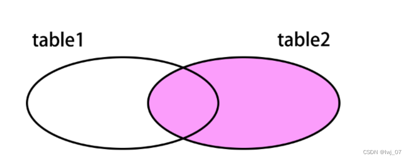 右连接:右连接的基础表为right join右侧数据表,左表只会展示符合搜索条件的记录,左表不足的地方用null填充。