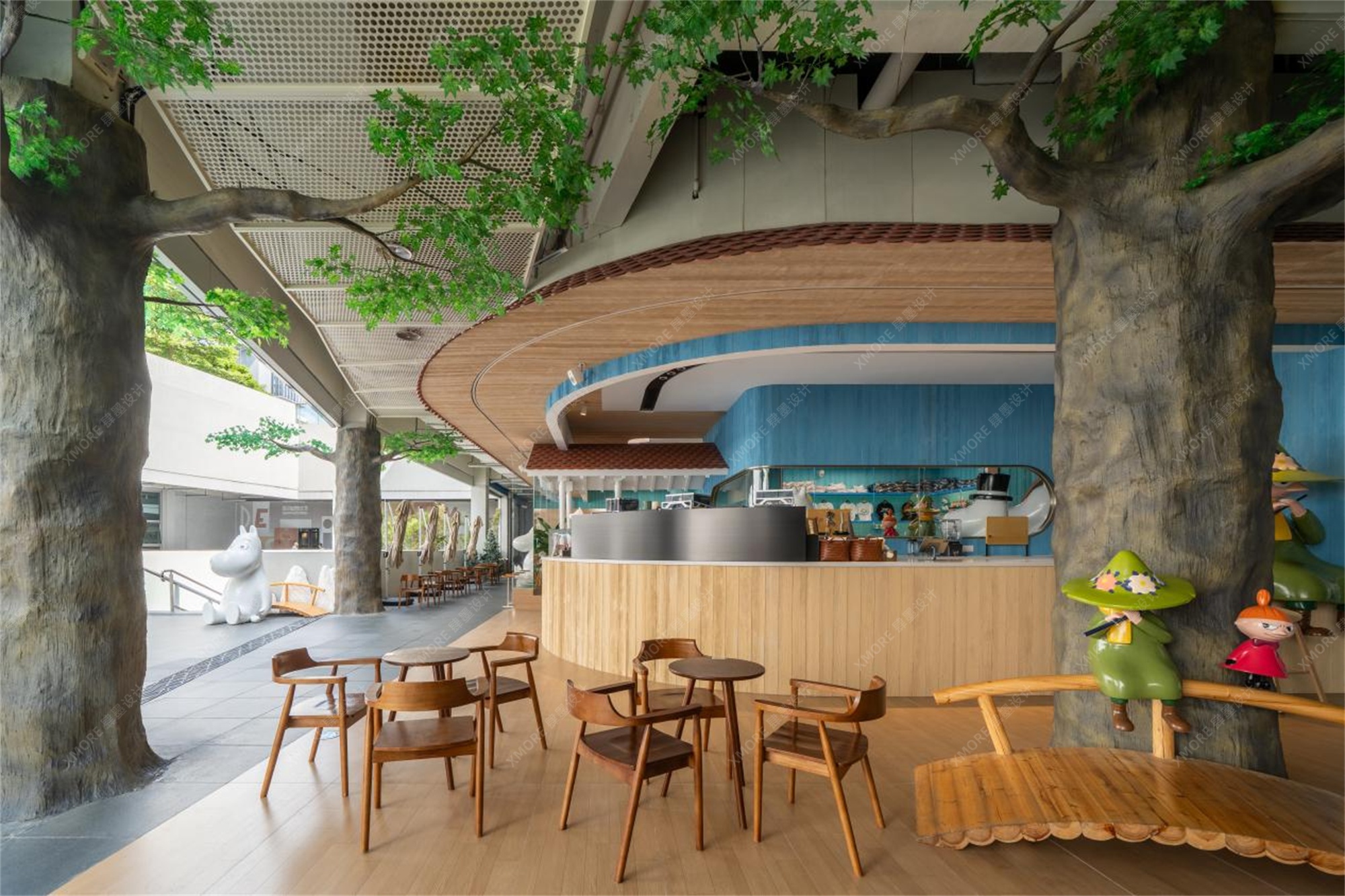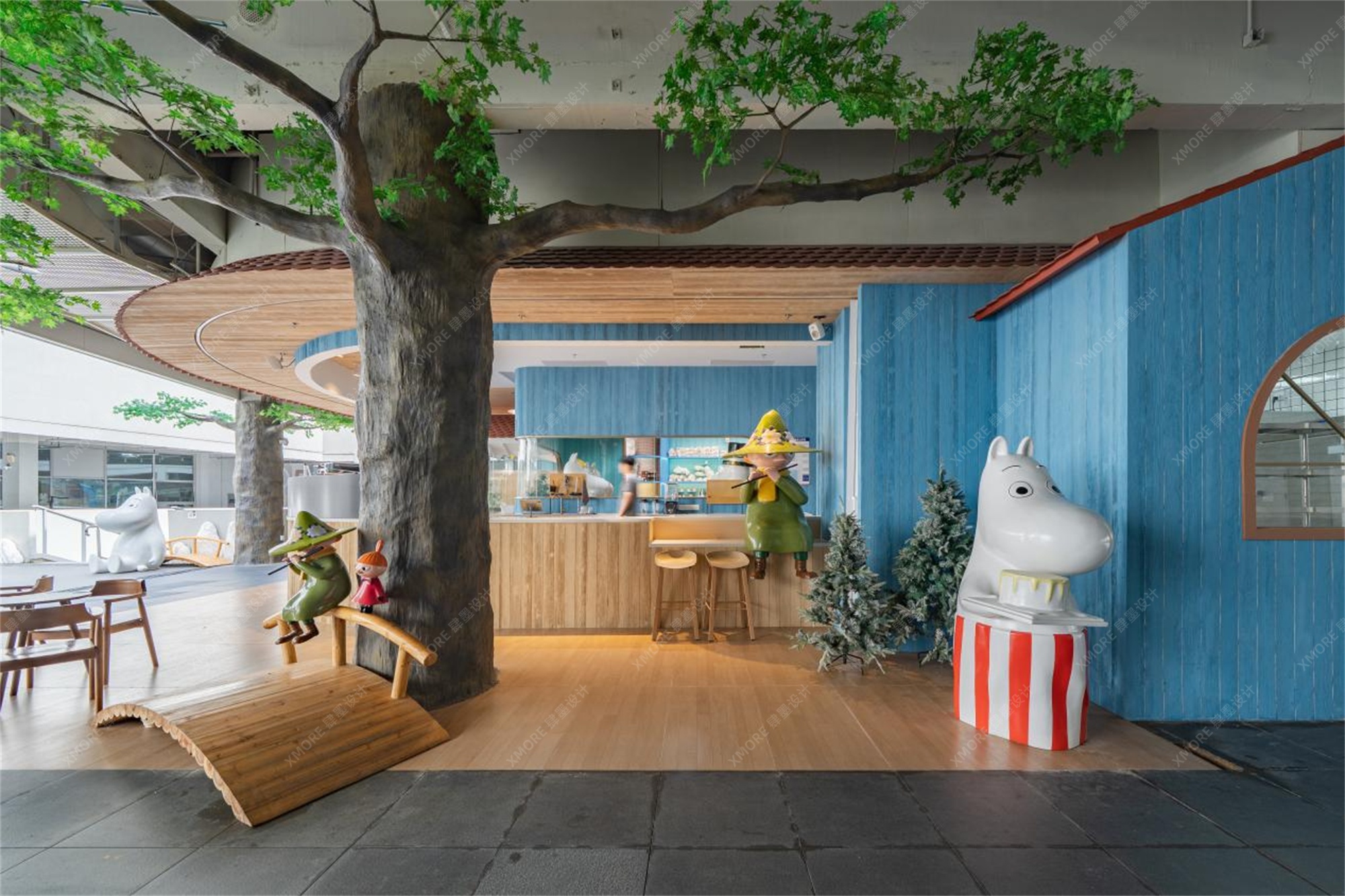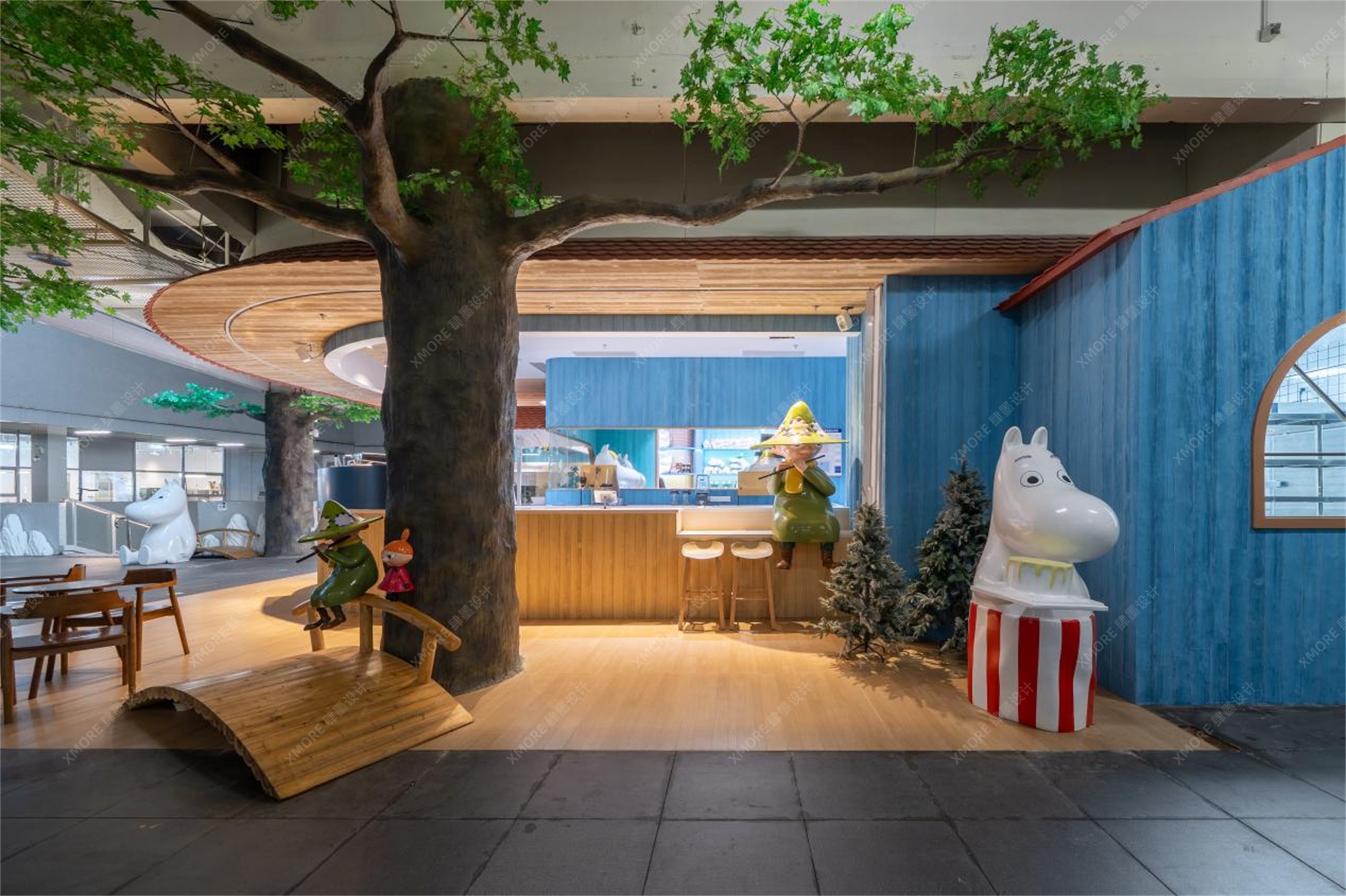 每一个细节,从木质桌椅的质感到大树根部的纹理,都经过精心打磨,确保了视觉的沉浸感。这种高度还原的场景,不仅是为IP粉丝准备的情怀杀,更让每一位初次到访的顾客都能瞬间被其温馨、治愈的氛围所吸引,情不自禁地举起手机。