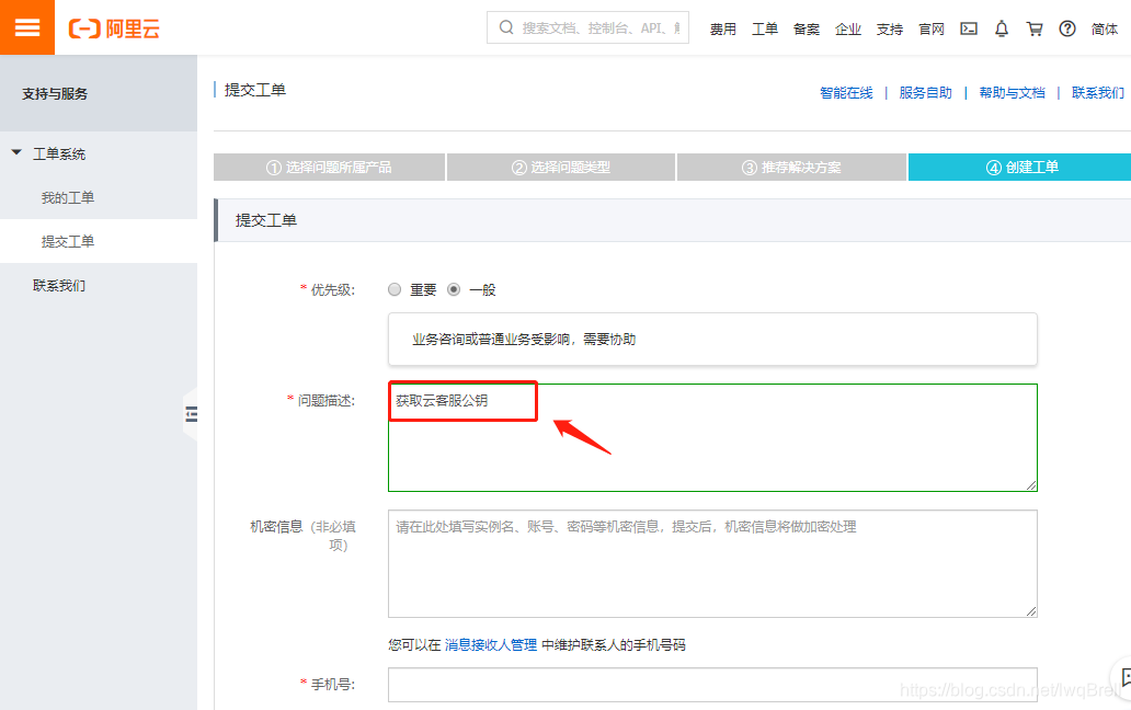 目前,阿里云客服不能在控制台里直接获取,所以需要提交工单向售后工程师获取。