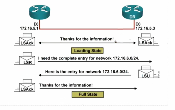 邻接状态:FULL标志着邻接关系的建立,进行报文传递