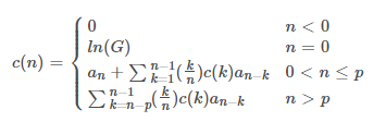 这是一个简单的从LPCs计算LPCCs的递归公式,不用计算DFT。在下式当中,a_k表示线性预测系数,在前面小节中表示为l_p。