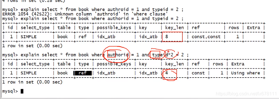 对于复合索引,如果左边失效,右侧全部失效 假设有一索引(a,b,c) 例如 b失效,则b,c也失效