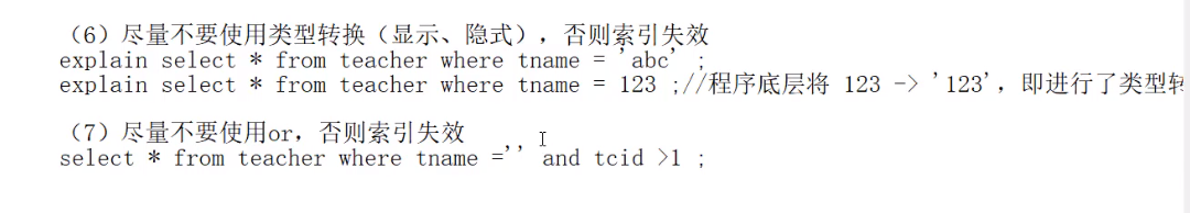 c.不要在索引上进行任何操作(计算,函数,类型转换)否则索引失效