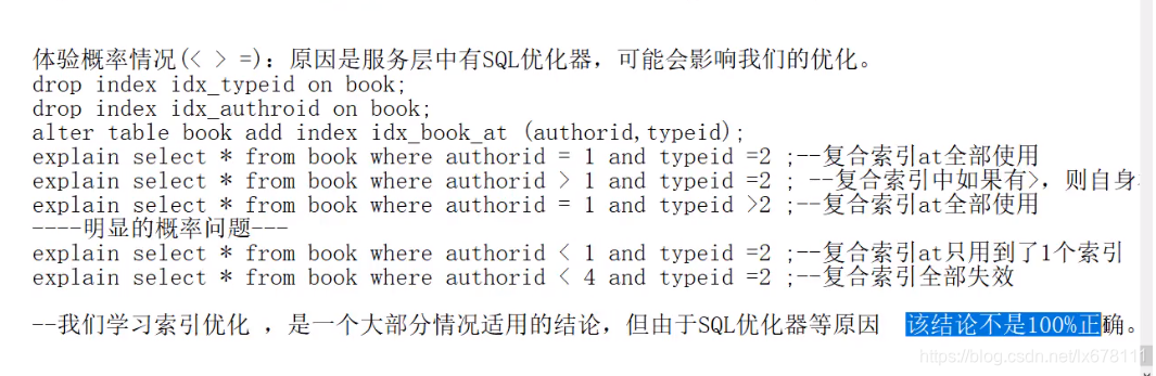 体验概率情况(< > =): 原因是服务层中有sql优化器,可能会影响我们的优化
