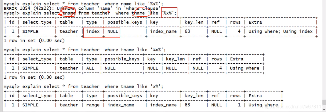 like尽量以“常量开头” 不要以‘%’开头 否则索引失效