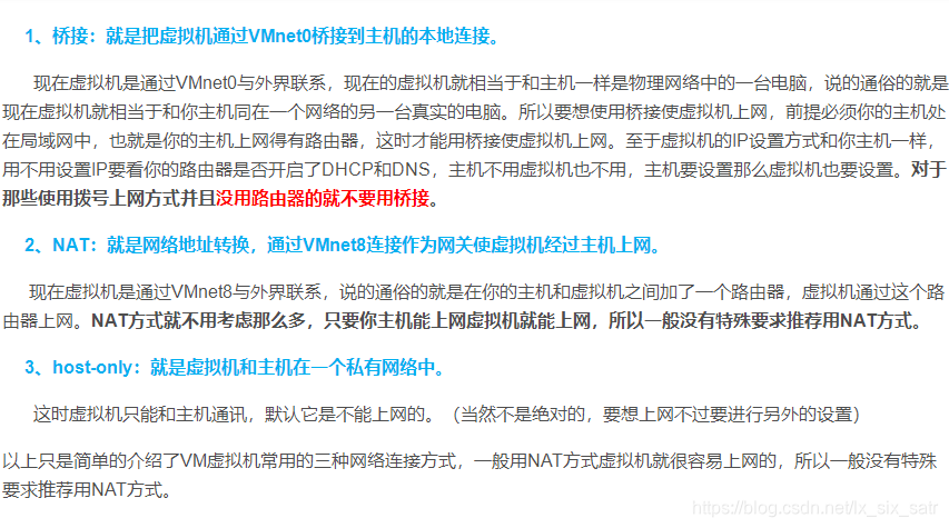 简单点,推荐你用NAT默认,当然,虚拟机默认的也是NAT的网络模式,但还是连不上。