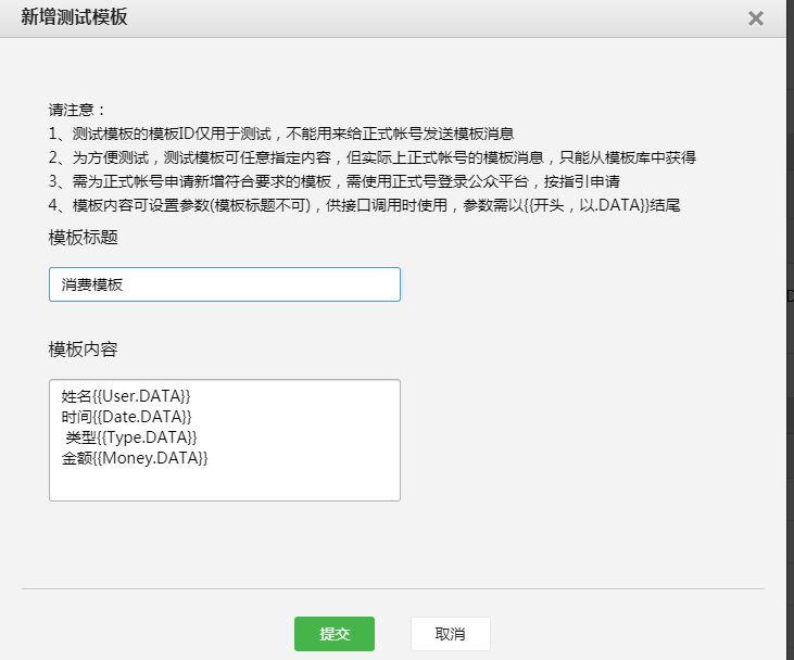 //模板ID配置 https://mp.weixin.qq.com/debug/cgi-bin/sandboxinfo?action=showinfo&t=sandbox/index模板配置示例