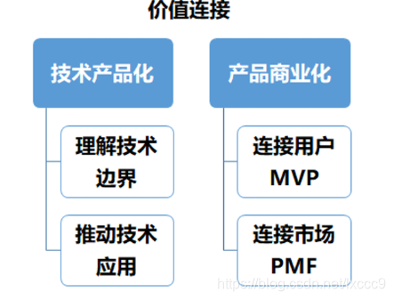 价值连接的本质是“思考如何利用技术和产品解决问题”,核心是“技术产品化”和“产品商业化”。