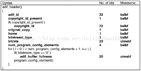 ADIF:Audio Data Interchange Format 音频数据交换格式。格式头就在文件开始处,这种格式常用在磁盘文件中。