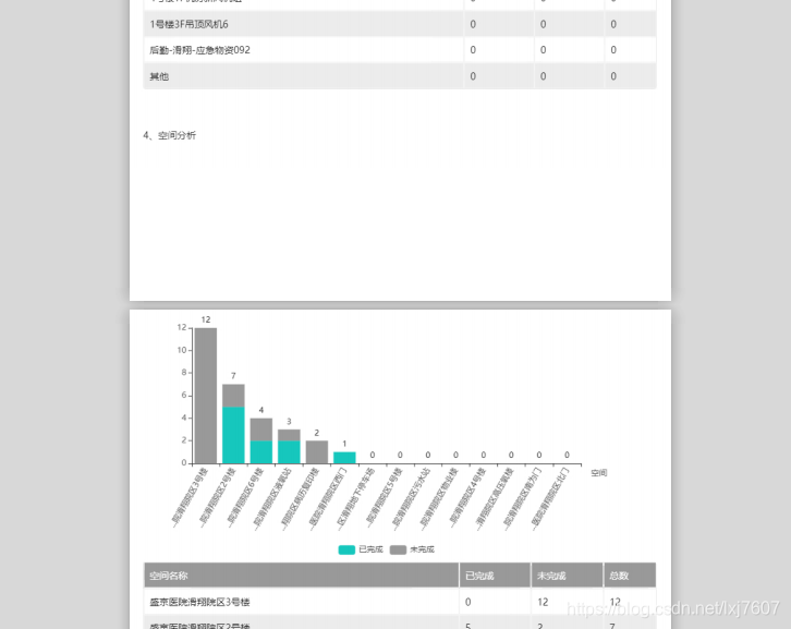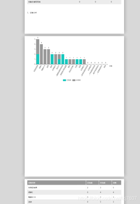 由于需要导出内容主要是由echarts和dataTable组成的,再加上内容比较长,需要分页,所以会出现图形或者表格被分页分割成两部分,如图